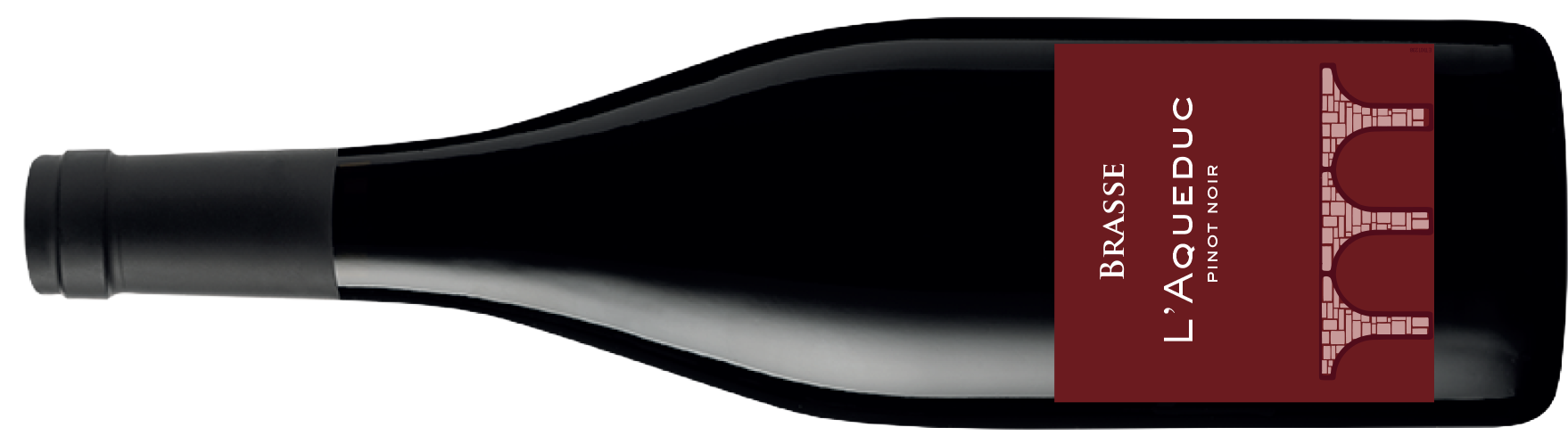 Remarquable porte d’entrée de la propriété, un aqueduc du XVIIIᵉ siècle est accolé au château de Brasse. Signe distinctif du domaine, il acheminait autrefois l’eau de l’Aude pour irriguer les plaines et les vignes alentours. Symbole de fraîcheur, il a inspiré ce pinot noir à la robe rouge cerise, au nez de fruits rouges légèrement kirschés, et à la bouche fraîche, souple et gourmande.
